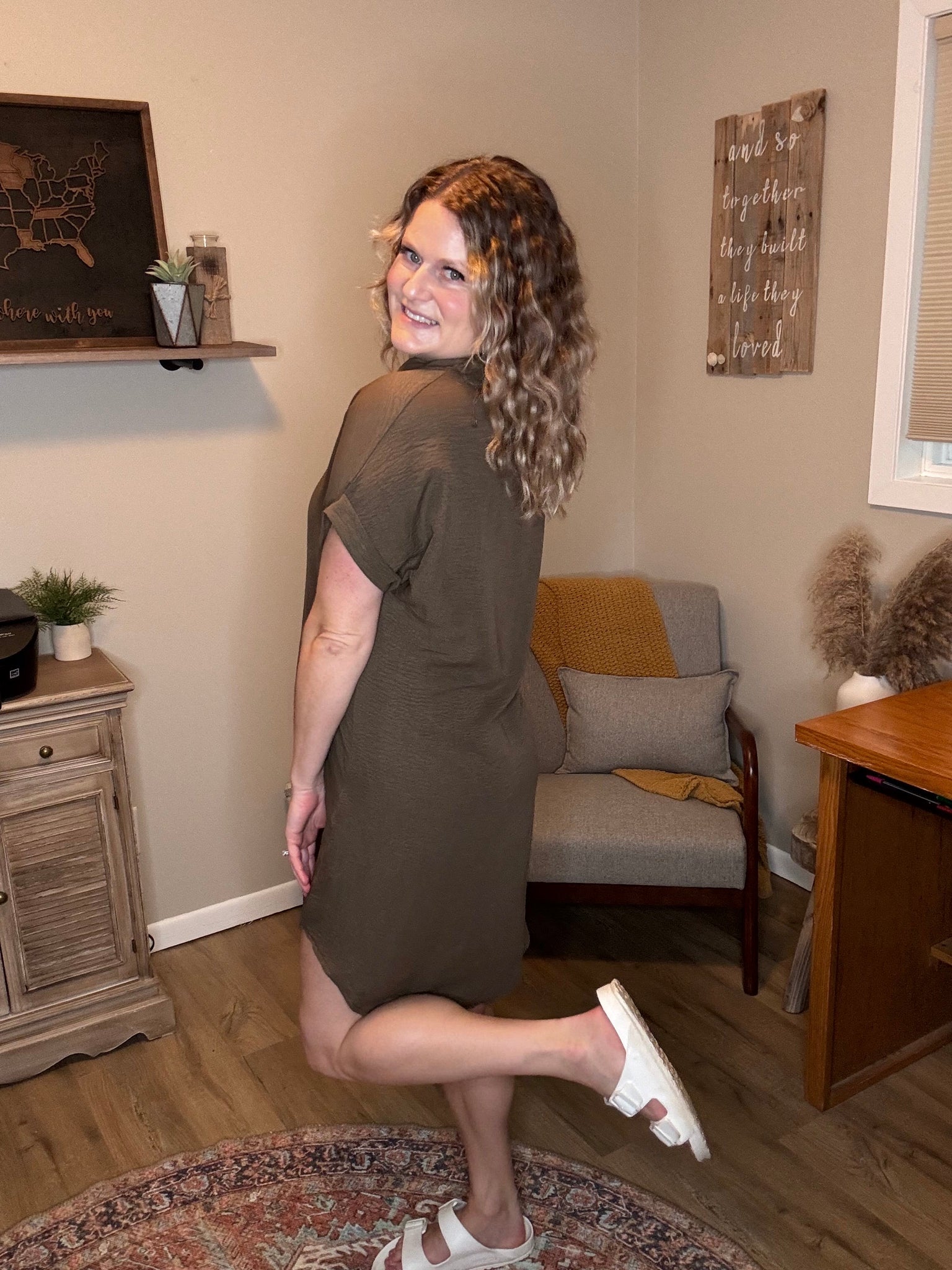 V neck button down dress