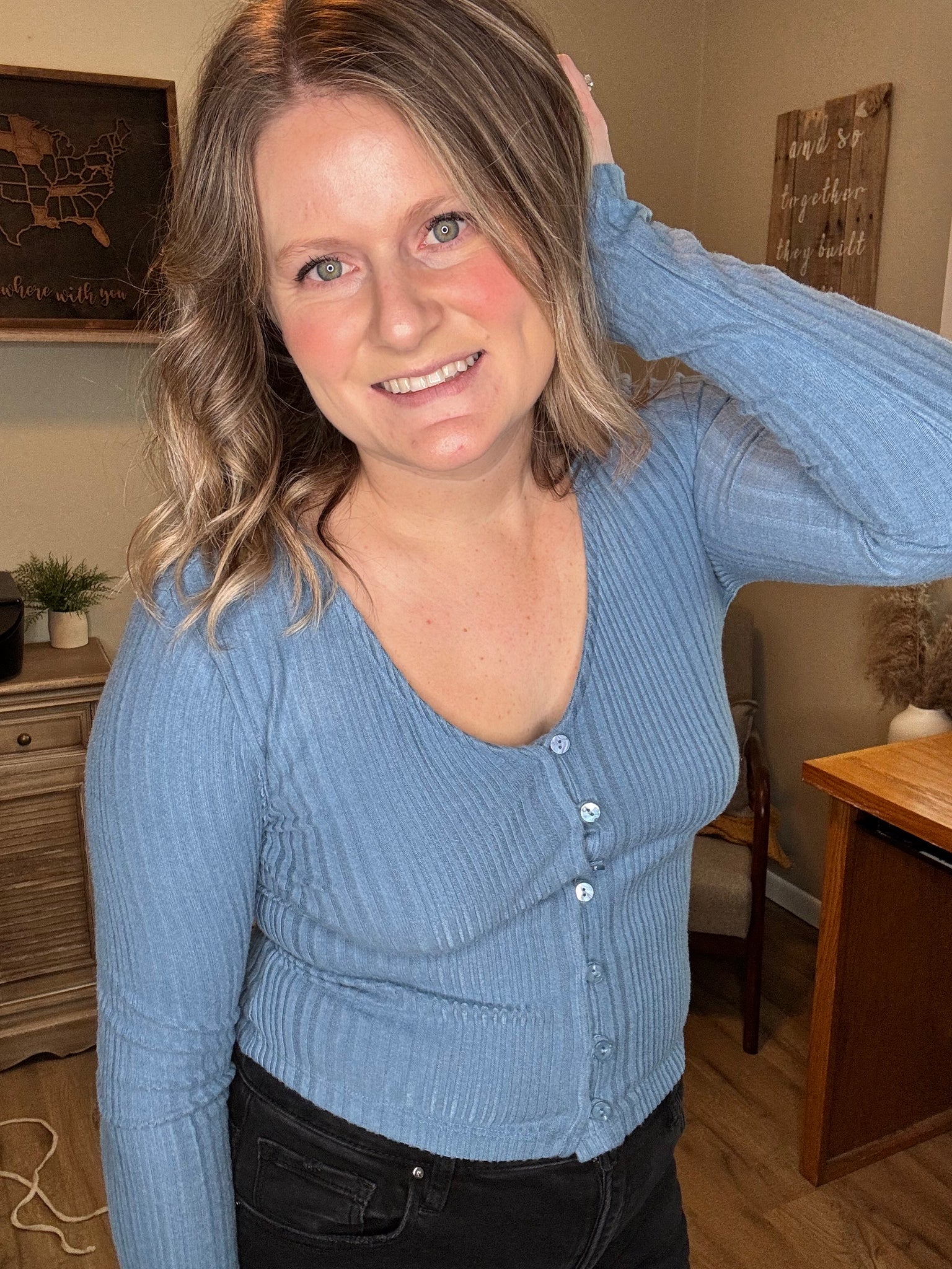 This Top Has Been Designed From A Brushed Fabric That Feels Soft Against The Skin And Shapes A V-Neckline And Long Sleeves